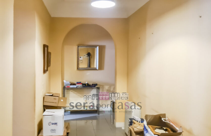 - Actualmente con muchas divisiones, en la zona de entrada tiene cuatro estancias. Continuas por el pasillo y hay otra habitación más y un baño. Al fondo, el espacio de la cocina, dos estancias más y un baño completo.